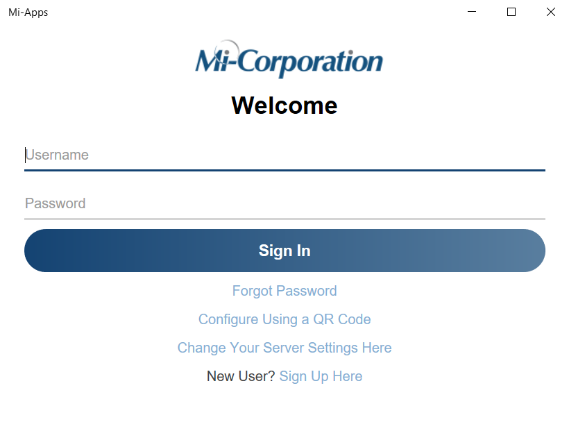 In order to connect Mi-Apps to a server and login, you must have the following information available: