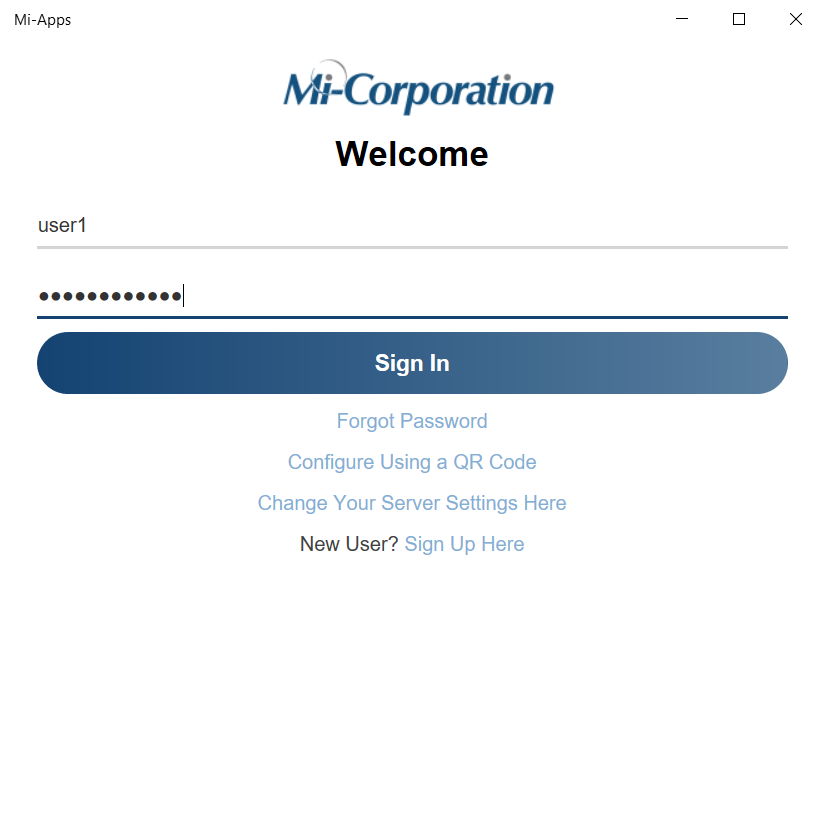 Once you have all of this information, you should launch Mi-Apps on your device. You will be presented with a screen that looks similar to this: